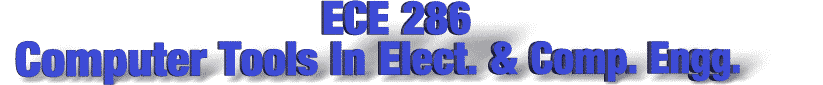 ECE 286 : Computer Tools in Electrical & Computer EngineeringThis is a ONE credit course. The class will be conducted once a week for 150 minutes (ie 3 lecture duration) and will meet for the first five weeks only. For the reminder of the period we will make the classroom available for working on the project assignment.